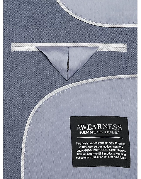 Lighten up with this Modern Fit suit in a softer, light blue color. From the Awearness Kenneth Cole collection, the suit features a single-breasted coat with traditional notch lapels and matching smooth, flat-front pants.