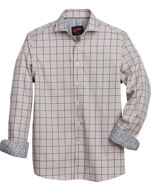 Stand out in style in this handsome sport shirt by Egara. This shirt features fine details like a crisp spread collar, in a classic windowpane plaid pattern.