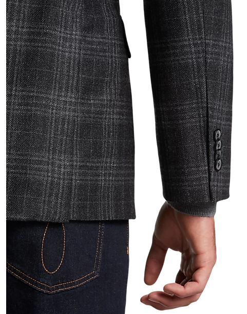 This handsome coat features a trim, Modern Fit and a classic charcoal plaid pattern. Woven in fine wool, it’s sure to become a cornerstone piece in your wardrobe.