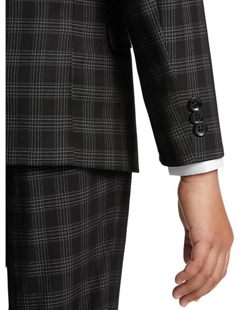 He’ll be just like the big boys in this refined and versatile two-button black plaid coat with coordinating pants. The coat features classic side vents, while the pants offer a modern, flat front.