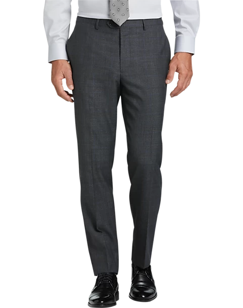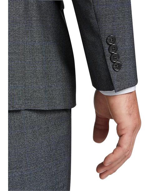 Look your best in comfort with this fine Lauren By Ralph Lauren Suit featuring a dark gray plaid pattern and fabric woven with a touch of stretch.