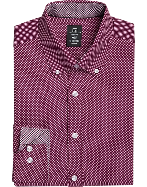 Michael Strahan Four-Way Stretch Modern Fit Dress Shirt, Burgundy Dot
