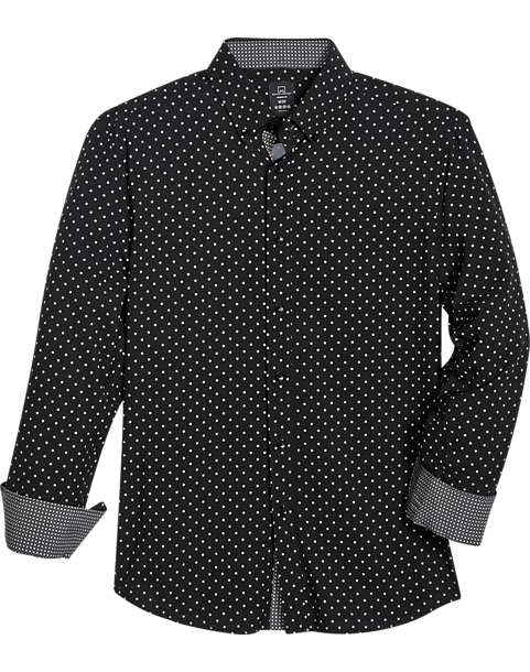 Michael Strahan Four-Way Stretch Modern Fit Sport Shirt, Black & Pink Dot