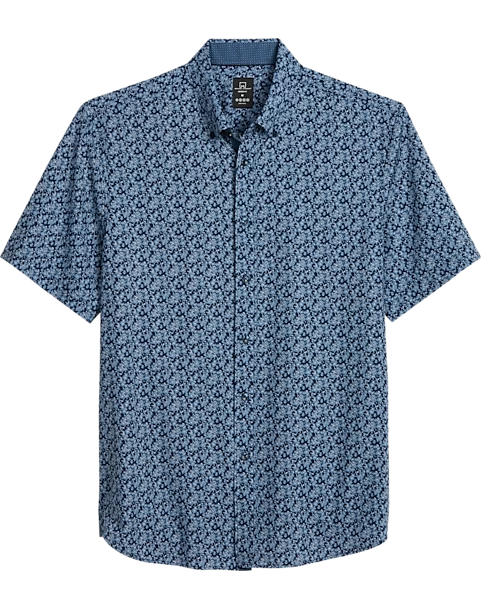 Michael Strahan Modern Fit 4-Way Stretch Short Sleeve Sport Shirt, Navy & Blue Floral