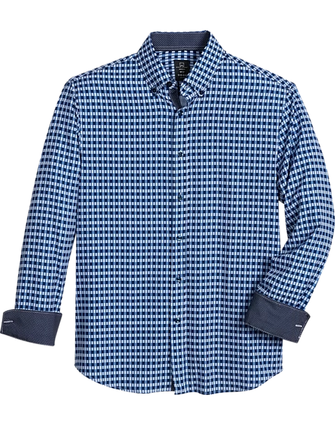 Michael Strahan Modern Fit Button-Down Collar Four-Way Stretch Sport Shirt, Medium Blue Geo Check