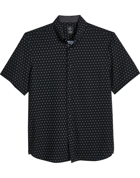 Michael Strahan Modern Fit Four-Way Stretch Short Sleeve Sport Shirt, Black Pinwheel