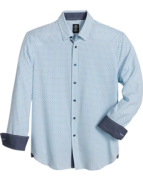 Michael Strahan Modern Fit Spread Collar 4-Way Stretch Sport Shirt, White Diamond Dot