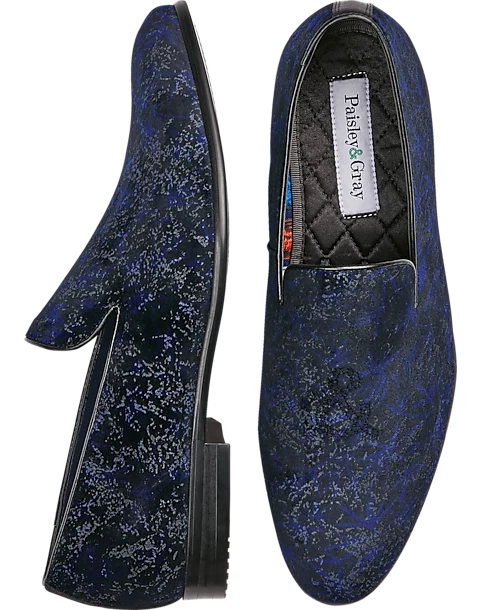 Paisley & Gray Party Bow Formal Loafers, Blue & Black Velvet Spackle