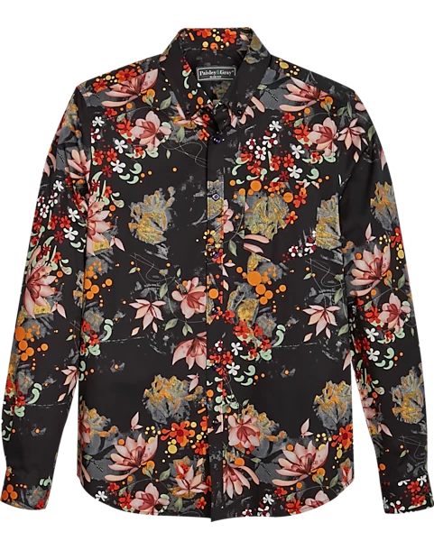 Paisley & Gray Slim Fit Spread Collar Sport Shirt, Black Paint Splatter Floral