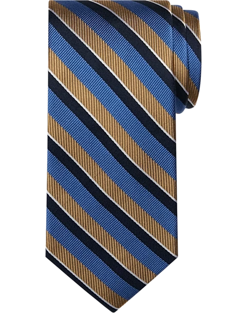 Stripes in retro-inspired hues bring a vintage vibe to this rich silk tie from Pronto Uomo.